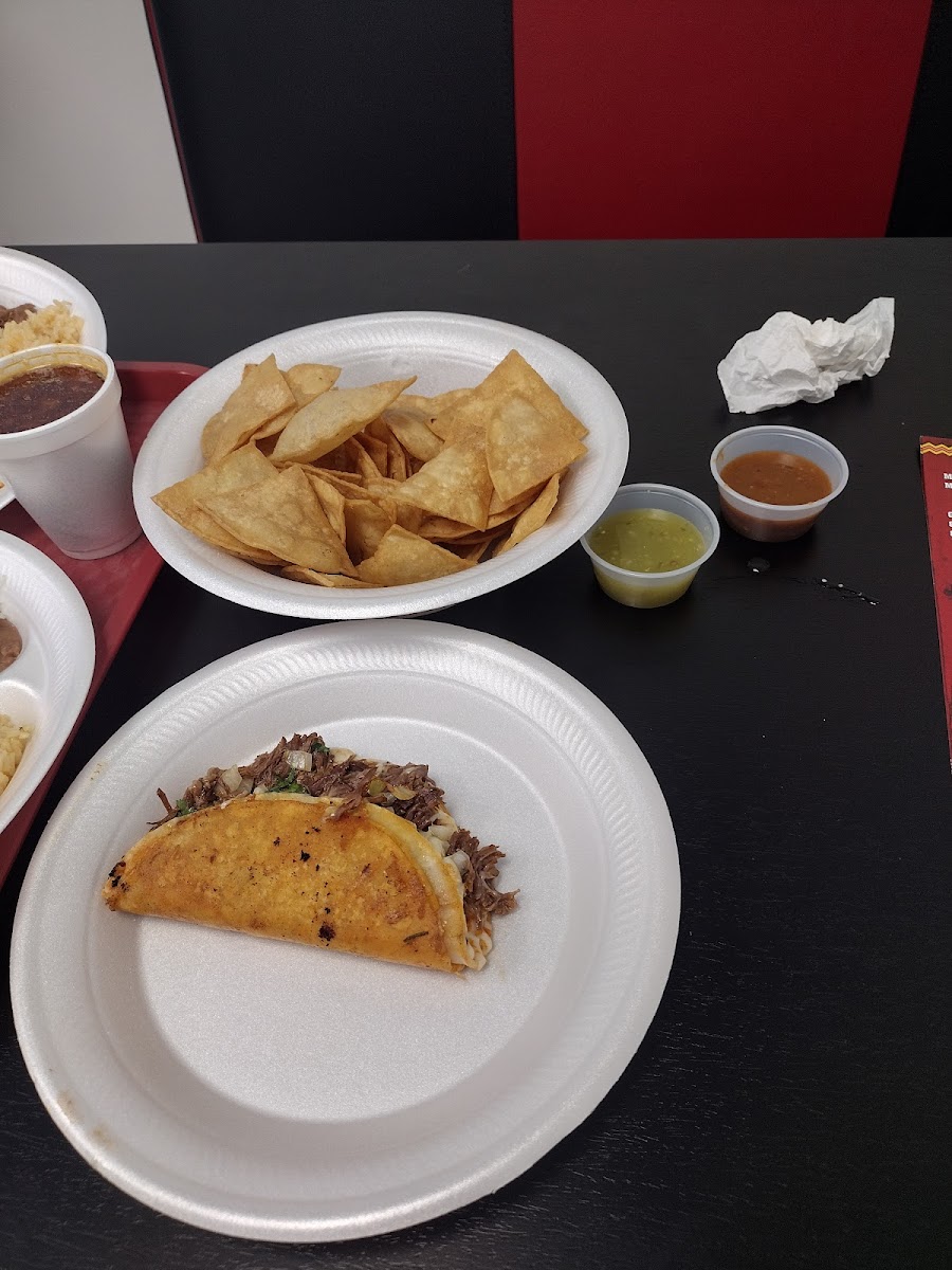 First time here! Optics, place is clean and organized. Staff was very polite and on point. Order was up quick! Food looks great! I will tell you of all the tacos my favorite was the quesobirria! It was delicious ! I tried the shrimp and fish also! Not bad at all! I will be back for breakfast and try the chilaquiles and menudo! If you are in thecarea and hungry, give it a go! Prices are good too! Enjoy!